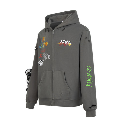 13DE MARZO Racing Graffiti Bear Zip Hoodie