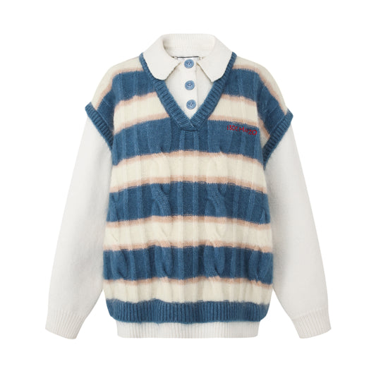 13DE MARZO Elmo Bear Artificial Fur Stripe Sweater