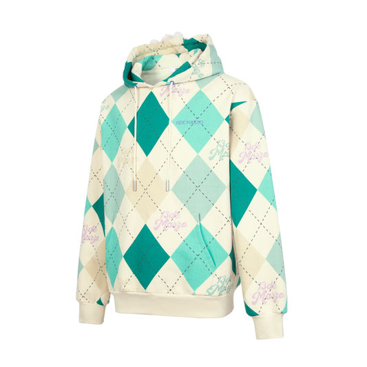 13DE MARZO Bunny Vintage Diamond Pattern Hoodie