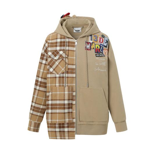 13DE MARZO Clipping Logo Plaid Zip Hoodie