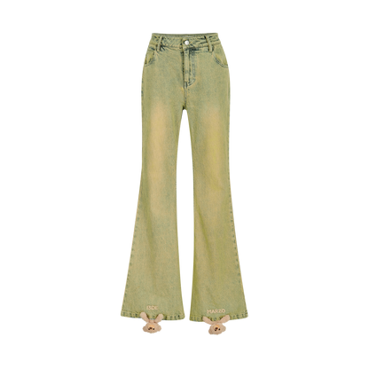 Turn heads—literally—with the Bear Headstand Jeans, where playful design meets wearable style. Crafted from 100% cotton in a soft, breathable washed denim, these jeans offer a flattering flared cut that elongates the legs and suits every style—from basic tees to elevated blouses.