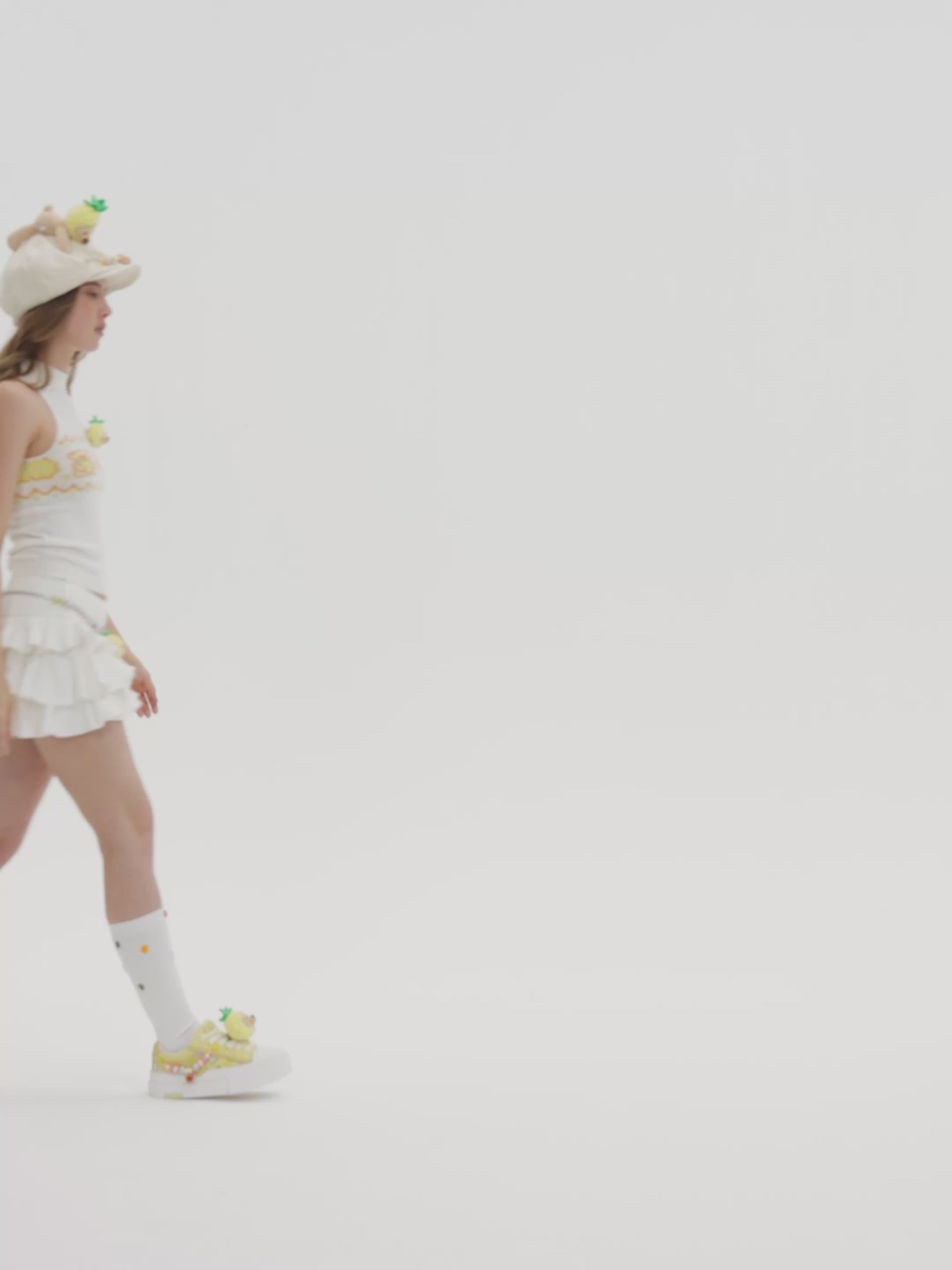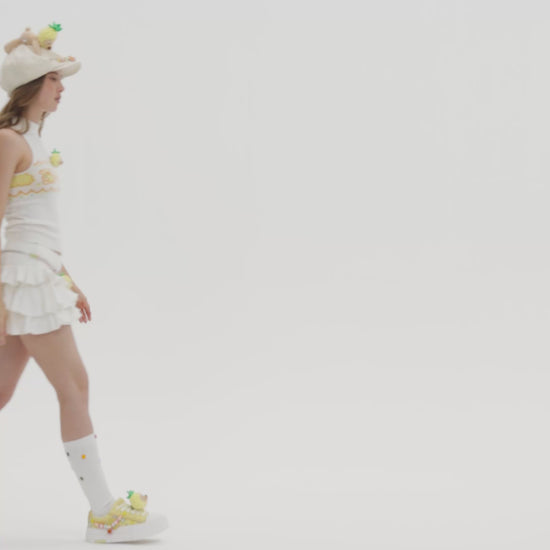 White: Built-in "cream filter," layered tiers resemble a fluffy cake, paired with a Chupa Chups beaded belt for extra sweetness.