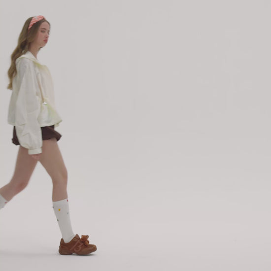 Design Concept: This lightweight jacket is a collaborative piece from the Chupa Chups collection. Made from an airy, breathable fabric, it feels weightless on the body and is well-suited for a variety of summer scenarios, from daily outings to beach vacations. The relaxed silhouette offers comfort and a forgiving fit, while the side pockets feature adjustable drawstrings that allow you to cinch the waist for a more defined shape. A beaded zipper pull is paired with a scented charm that matches the fruit theme. The overall design is simple and versatile, combining practicality with visual appeal to meet both sun protection and styling needs during the summer season.